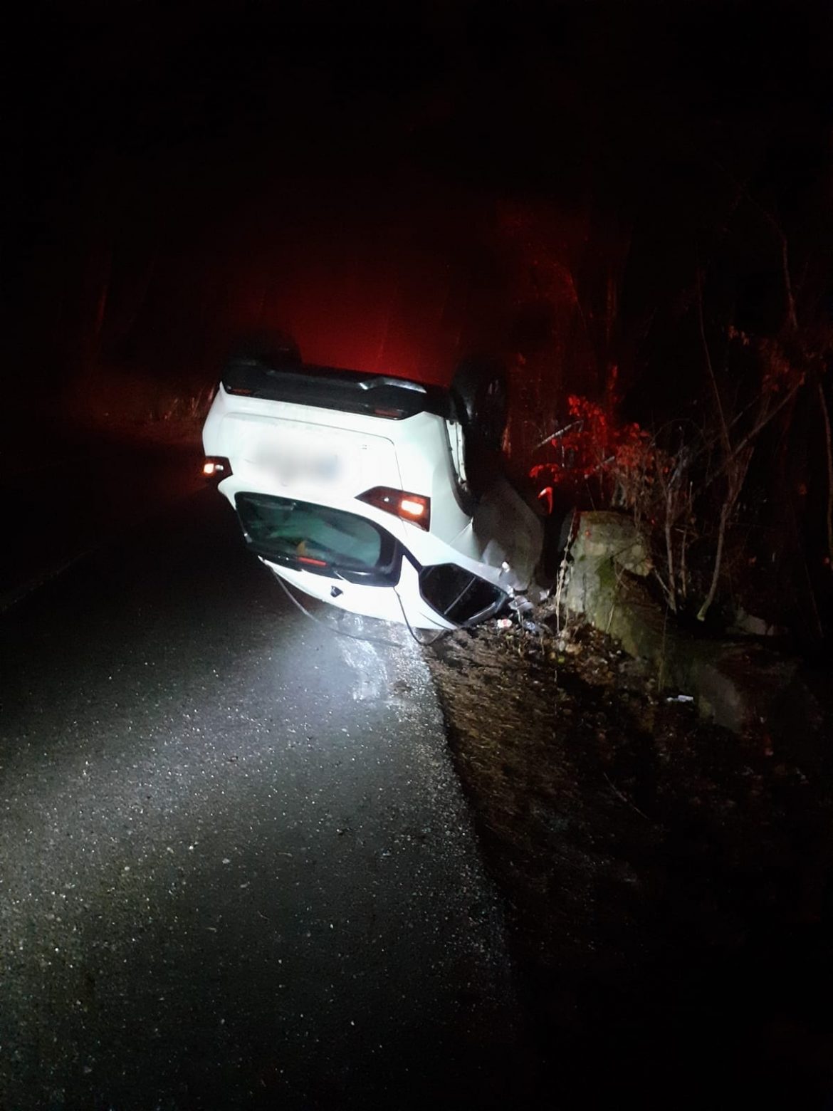 O mașină s-a răsturnat miercuri seara între localitățile Someșu Cald și Tarnița. Un cetățean străin s-a urcat băut la volan și a lovit un parapet de pe marginea drumului.