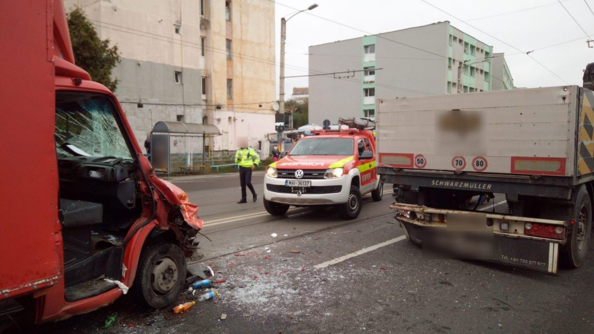 Solicitarea prin numărul unic pentru apeluri de urgență 112 a fost primită în jurul orei 9.20, iar în momentul sosirii pompierilor la locul accidentului, au găsit un autocamion și o autoutilitară avariate și o persoană încarcerată în cabina autoutilitarei.