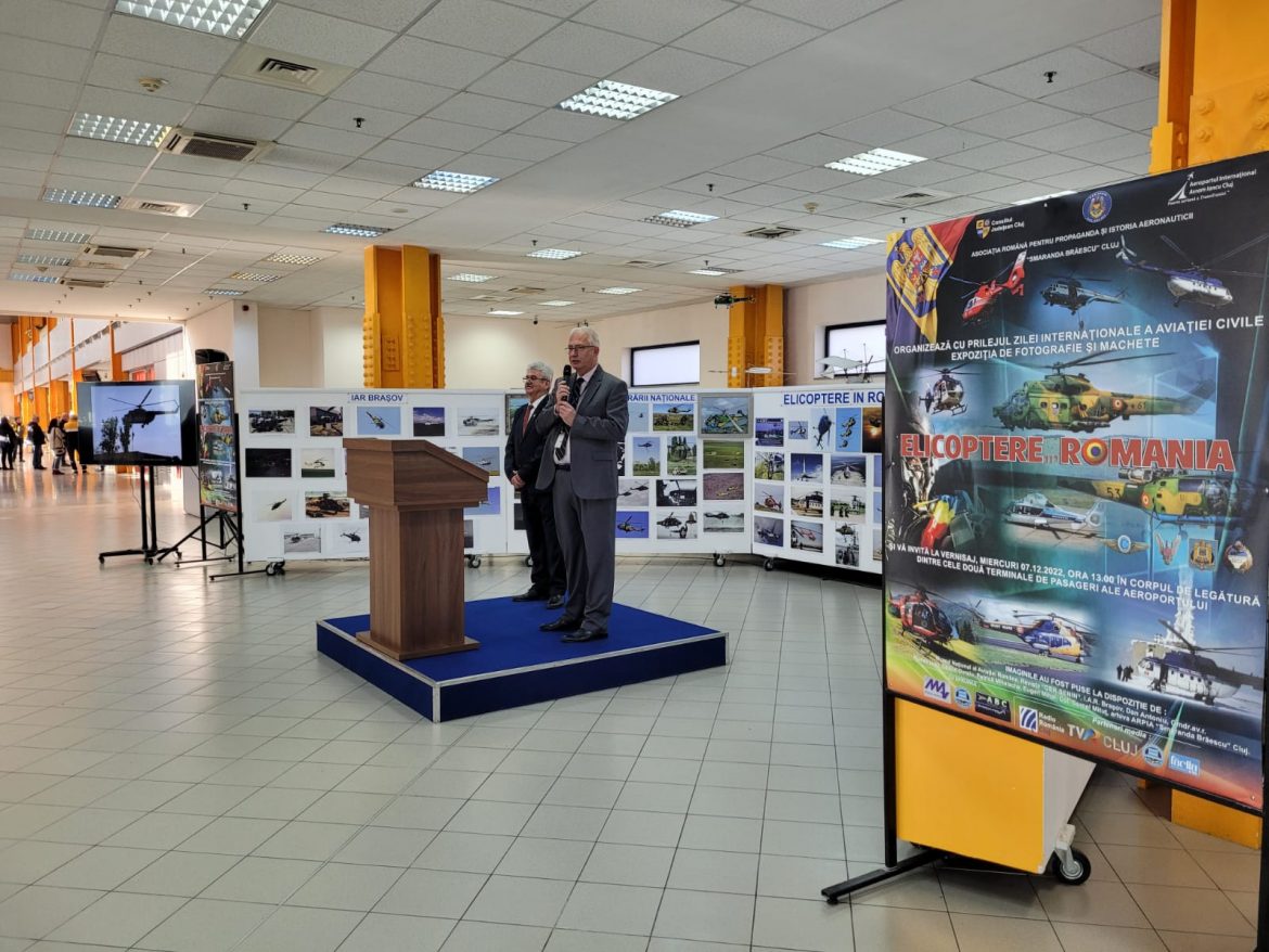 În incinta aeroportului a avut loc vernisajul unei expoziții de fotografii şi machete “Elicoptere în România” care au evidențiat povestea fascinantă a producţiei aeronautice în România, aducând în atenția tuturor iubitorilor de aviație faptul că de-a lungul timpului, România a fost una din țările care a promovat industria aeronautică și mai ales a fost dezvoltată datorită inteligenței inginerești în domeniul aviației. Evenimentul s-a bucurat de prezența reprezentanților societății academice clujene, a cadrelor militare și a reprezentanților societăţilor cu activitate în domeniul aviaţiei civile din perimetrul aeroportuar.