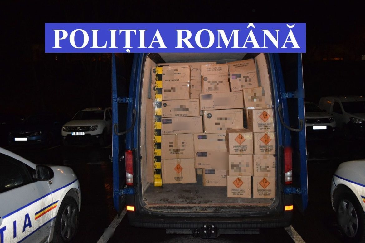 „La data de 22 decembrie a.c., în jurul orei 19.40, polițiștii au depistat un tânăr de 23 de ani, din comuna Giarmata, județul Timiș, în timp ce transporta aproximativ 2.950 kg articole pirotehnice din categoriile P1, F2, F3 și F4, cu intenția de a le distribui  unor persoane neautorizate din județul Cluj, în vederea comercializării.