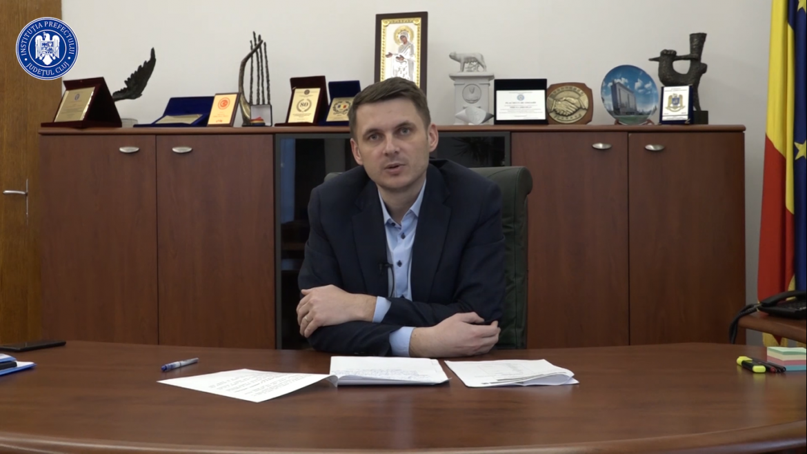 De asemenea, prefectul face un apel la calm către toți cetățenii Clujului cu privire la instituirea stării de urgență: „Trebuie să înțelegem că starea de urgență a fost instituită cu un scop foarte clar. În primul rând, pentru a scurta termenele pentru achiziția de materiale, substanțe și medicamente de protecție, pentru a întări autoritatea și funcționalitatea insituțiilor statului care monitorizează direct această situație. Nu trebuie să ne facem probleme la unele dezinformări care apar în spațiul public. Nu vom vedea armata pe străzi, nu se vor restricționa alimente, medicamente sau combustibil, așa cum în mod eronat circulă informații false. Stocuri sunt suficiente pentru alimente și medicamente. Nu trebuie să-și facă nimeni niciun fel de problemă. Această stare de urgență are ca rol exclusiv facilitarea și întărirea capacității operaționale a autorității pentru a funcționa cât mai eficient în combaterea coronavirusului de la nivelul României”, încheie Mircea Abrudean.