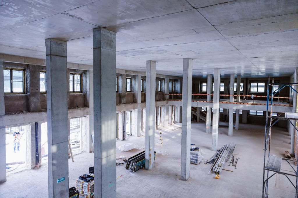 ”Structura interioară a fost reconstruită în trei etape, câte o treime din clădire fiind reconfigurată pe rând. Pereții exteriori au fost consolidați prin torcretare – o tehnică de aplicare a betonului pe verticală în straturi subțiri, care asigură stabilitatea zidăriei. În interior, clădirea a fost reconstruită integral, păstrându-se doar pereții exteriori originali. Regimul de înălțime și proporțiile geometrice au fost menținute, și au fost integrate deschideri care permit intrarea luminii naturale în spațiile interioare – o noutate față de configurația originală. Casa scării a fost modernizată complet și dotată cu lift, iar acoperișul a fost refăcut și învelit în tablă, pentru o durabilitate sporită”, a explicat Vlad Samoil, project manager RIVUS.