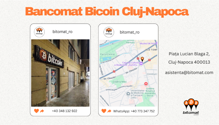 Cluj-Napoca continuă să-și consolideze statutul de oraș deschis tehnologiilor emergente. După boom-ul startup-urilor din industria IT și extinderea infrastructurii digitale, Cluj-Napoca, capitala Transilvaniei marchează un nou pas spre viitor: instalarea unui nou bancomat Bitcoin Cluj-Napoca, amplasat chiar in inima orașului, localizat in Piața Lucian Blaga 2, Cluj-Napoca 400013.