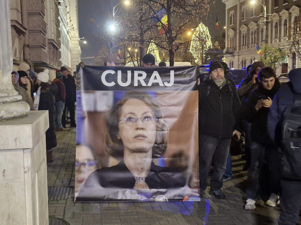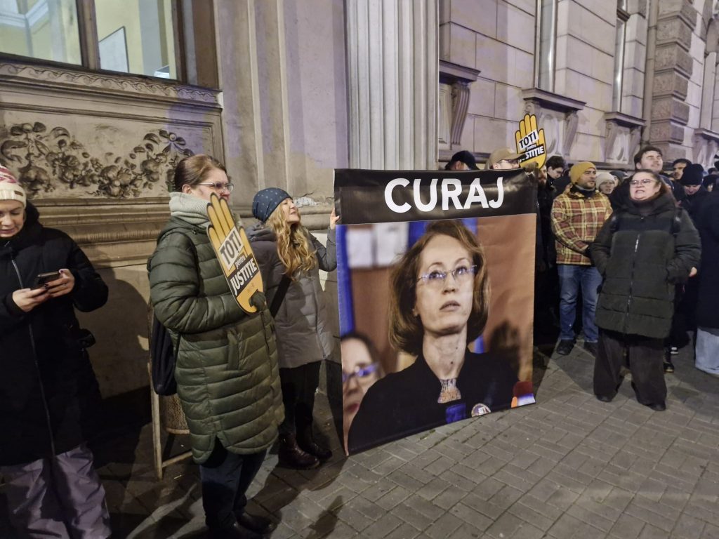 Manifestații au rezistat frigului și s-au solidarizat în jurul judecătoarei Raluca Moroșanu, ce a întrerupt conferința Curții de Apel București în semn de susținere față de colegul ei Laurențiu Beșu, ce în cadrul materialului a vorbit despre presiunile exercitate asupra magistraților din partea conducerii. Printe scandările manifestanților s-au auzit ”Vrem justiție, nu prescripție!”, ”Justiție, nu corupție!” și ”Raluca nu ceda, strada e de partea ta!”