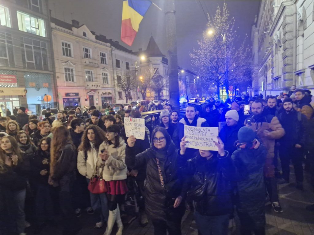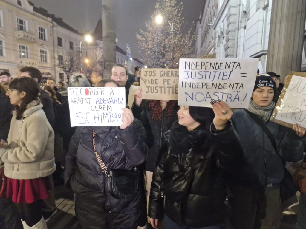 Sute de clujeni au ieșit joi seara la protest, pentru a doua seară consecutivă, în fața Tribunalului Cluj-Napoca de pe Calea Dorobanților nr. 2 pentru a atrage atenția asupra nevoii de schimbare în sistemul judiciar în urma dezvăluirilor documentarului Recorder ”Justiție Capturată”.