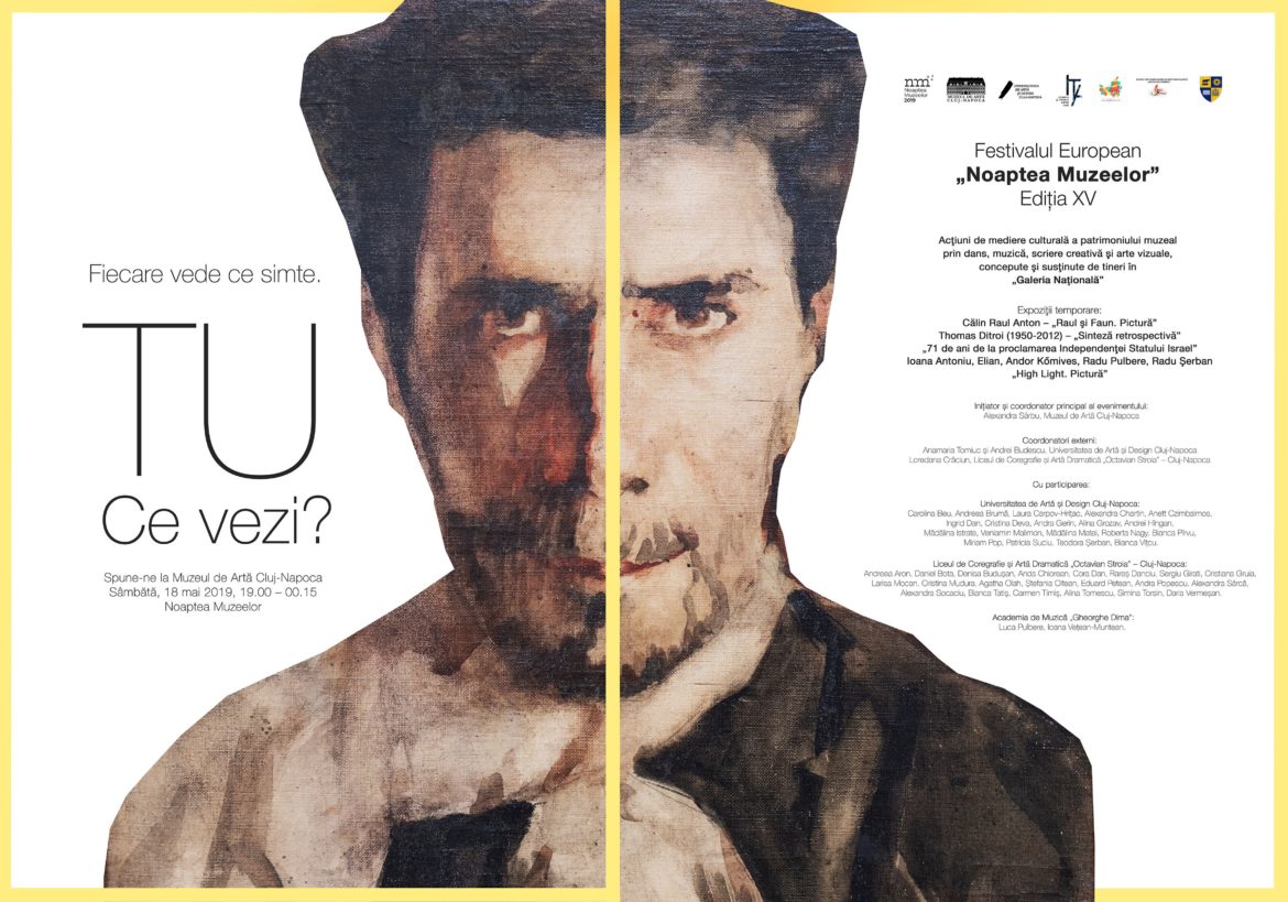 Muzeul de Artă Cluj-Napoca invită publicul la o nouă ediție a Festivalului European „Noaptea Muzeelor”, care se va celebra sâmbătă, 18 mai 2019, în intervalul orar 19:00-01:00 (ultima intrare: 00:15). Intrarea este gratuită.