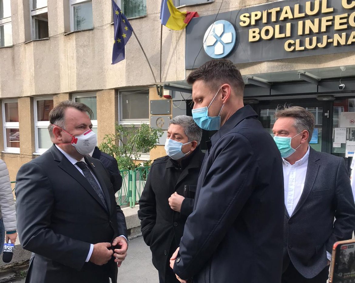 Ministrul Nelu Tătaru, aflat astăzi într-o vizită la Cluj, a evaluat situația de la Spitalul de Boli Infecțioase și de la Clujana, două dintre unitățile medicale care tratează pacienți Covid. Concluzia acestuia a fost că unitățile medicale din Cluj reușesc în acest moment să facă față afluxului de pacienți și nu se impune deocamdată suplimentarea numărului de paturi de Terapie Intensivă, așa cum s-a întâmplat la Târgu Mureș sau la București.
