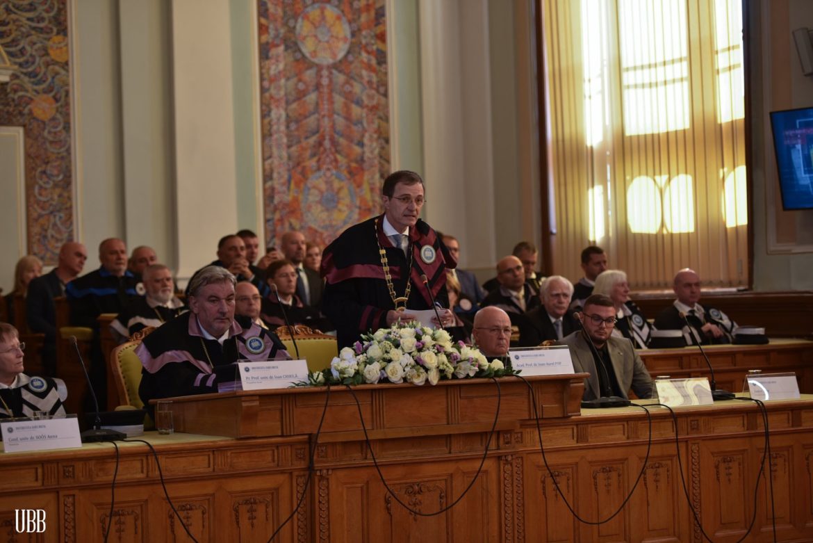 ,,Refondarea instituției noastre ca universitate românească în 1919, după o experiență de peste trei secole de la prima întemeiere, a însemnat împlinirea celui mai înalt deziderat de educație și de instruire, formulat în epoca modernizării Europei, la Revoluția Română de la 1848-1849. În urmă cu un veac, marele savant vizionar Vasile Pârvan ne-a arătat „Datoria vieții noastre”, anume „spiritualizarea vieții marelui organism social-politic și cultural-creator care e națiunea”. Acest scop al luptei noastre rămâne actual și de viitor, mai ales că acum „tradiția noastră strălucește împreună cu virtuțile Europei” (Traditio nostra unacum Europae virtutibus splendet), într-un concert al națiunilor. Prețuim națiunea română ca să putem prețui toate națiunile pământului, dar prețuim mai ales cunoașterea universală, dincolo de limbi, de religii (confesiuni) și de frontiere, convinși fiind că valorile intelectuale dau măsura valorii omenirii și că marea comuniune dintre magiștri și discipoli, din cadrul Almei Mater Napocensis, ne conduce spre cultură și civilizație, spre adevăr și dreptate, spre bine și spre iubire de semeni. Vivat, crescat, floreat!”, afirmă rectorul UBB, acad. prof. dr. Ioan-Aurel Pop.