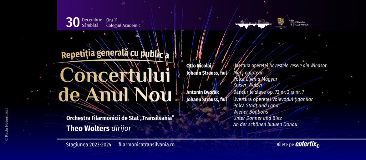 Pentru a marca finalul anului 2023, într-o manieră specifică instituției muzicale clujene, de înalt profesionalism și calitate a actului artistic, Filarmonica de Stat „Transilvania” invită publicul sâmbătă, 30 decembrie 2023, ora 20.00, la Colegiul Academic, la concertul extraordinar de Anul Nou.