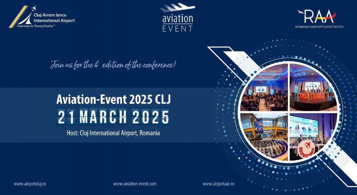 Conferința internațională de aviație Aviation-Event 2025 CLJ va avea loc pe 21 martie 2025, la Cluj-Napoca, reunind lideri din industrie, factori de decizie și experți pentru a discuta viitorul aviației în contextul unor peisaje geopolitice, economice și de mediu aflate în continuă schimbare. Conferința, găzduită de Aeroportul Internațional Cluj și organizată de Aviation-Event, va include o serie de paneluri și sesiuni moderate menite să abordeze provocările esențiale din industrie, cum ar fi decarbonizarea, armonizarea reglementărilor și inovația.