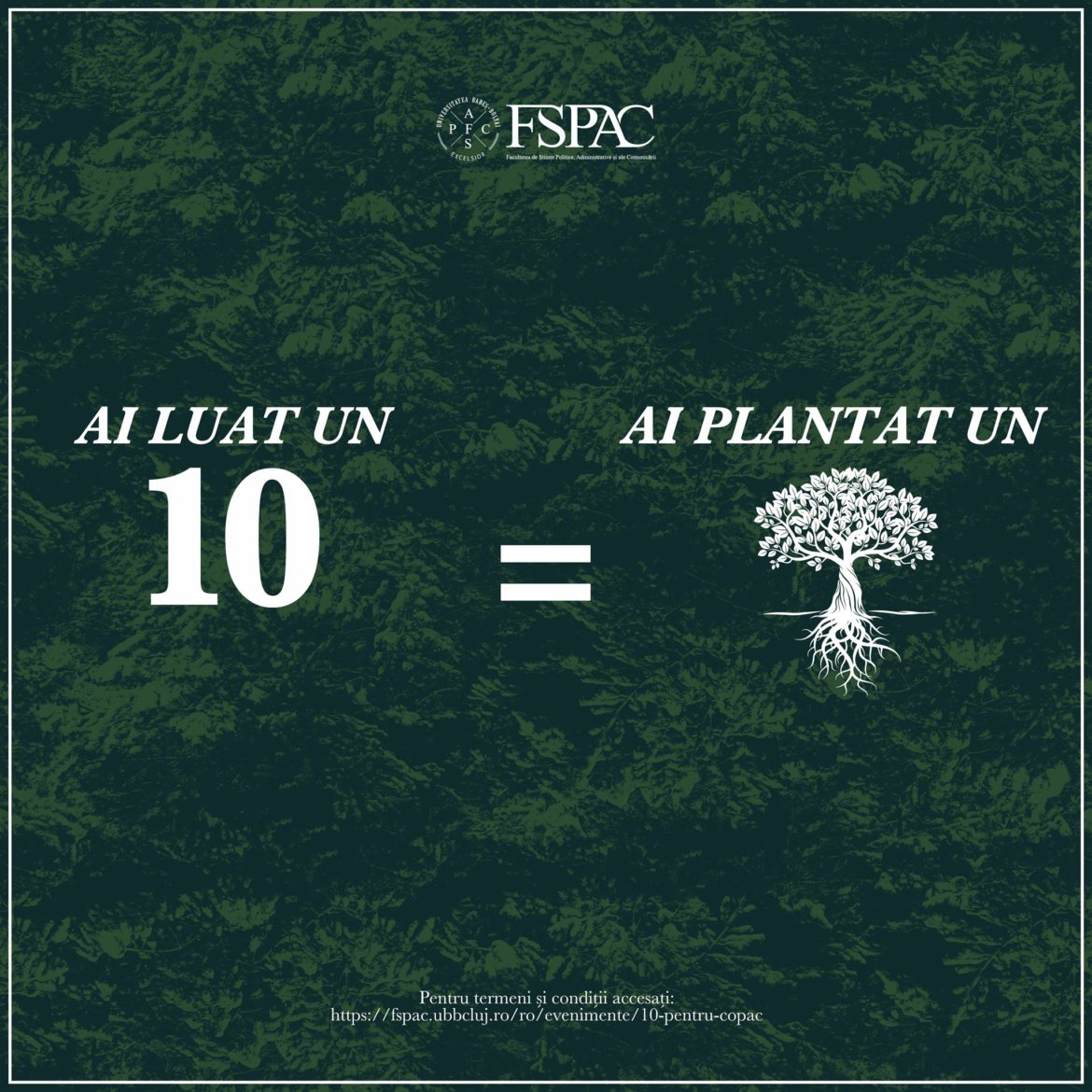 Studenții care doresc să se implice în această inițiativă pot găsi mai multe informații la adresa https://fspac.ubbcluj.ro/ro/evenimente/10-pentru-copac.