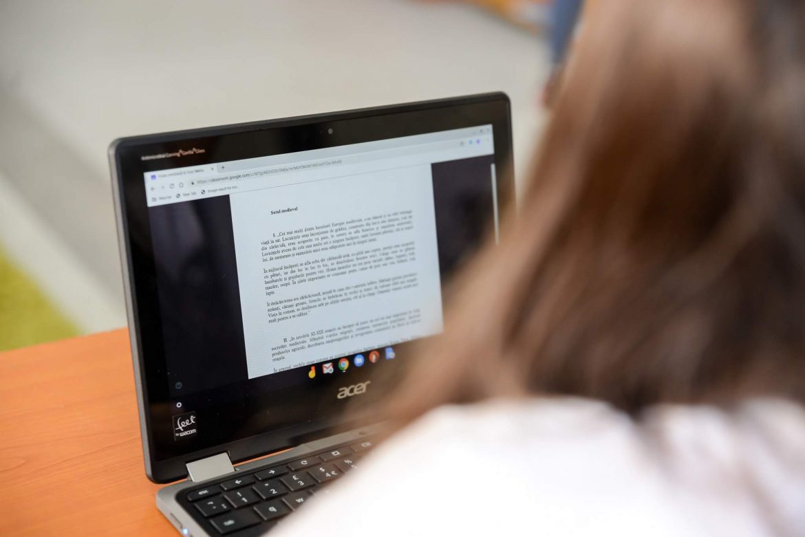 Lecțiile se desfășoară online – fiecare copil stă acasă – prin aplicații precum Google Meet, Google Slides sau Google Forms, scrie edupedu.ro