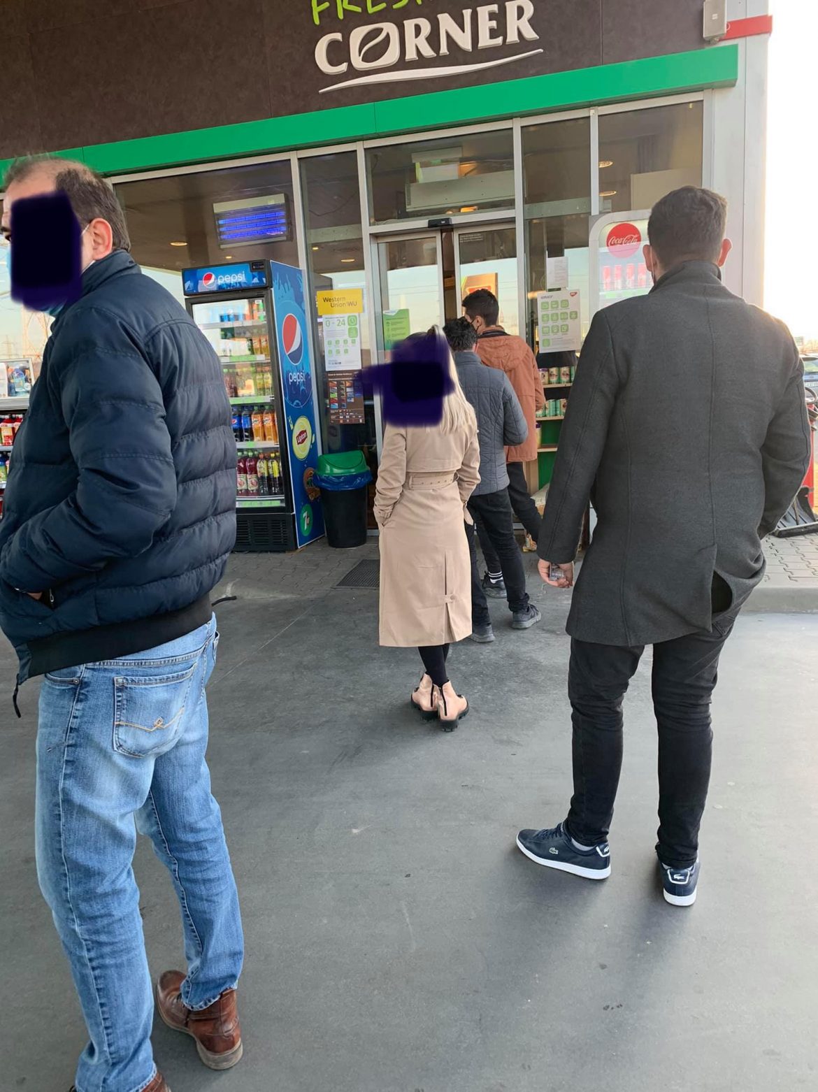 „Azi am participat si eu la o astfel de coada, pt ca am iesit de la servici la 18:05 si n-am apucat sa-mi iau tigari. Pompele stau blocate pana le vine randul celor care alimenteaza sa poata plati. Benzinariile se transforma intr-o mega parcare(fara locuri suficiente de parcare). Nici in starea de urgenta nu au fost inchise magazinele”.