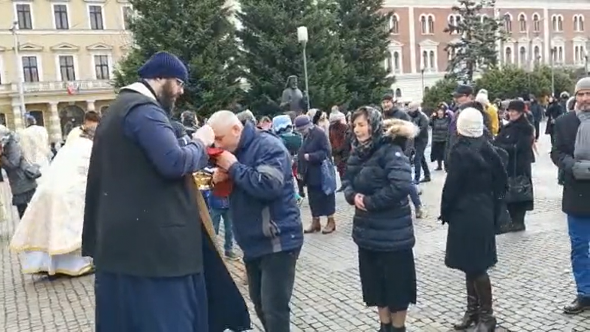 În plină pandemie de COVID-19, slujitorii Catedralei Ortodoxe din Cluj-Napoca nu par a fi înțeles recomandările autorităților. În cadrul liturghiei oficiate în fața lăcașului de cult, preoții și călugării au împărtășit zeci de persoane cu aceeași linguriță. Nici măcar nu s-au obosit să o șteargă ori să o dezinfecteze înainte de refolosire, deși exista pericolul de a răspândi noul coronavirus în rândul credincioșilor.
