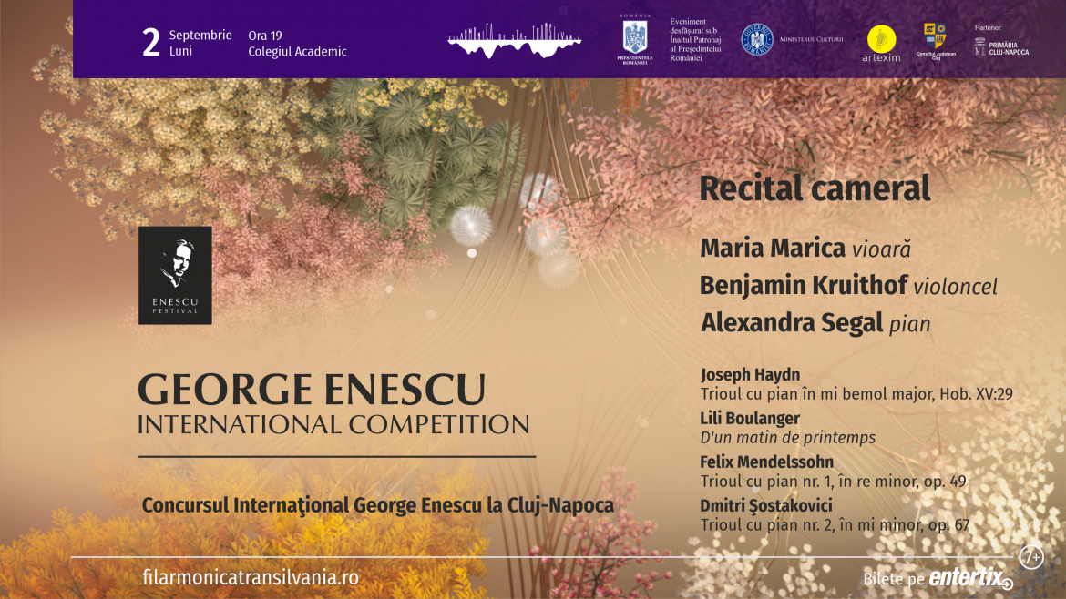 Luna septembrie debutează la Filarmonica de Stat „Transilvania” cu trei recitaluri de excepție, grupate sub titlul Concursul Internațional George Enescu la Cluj-Napoca, o colaborare a Filarmonicii clujene cu George Enescu Festival și cu Artexim.
