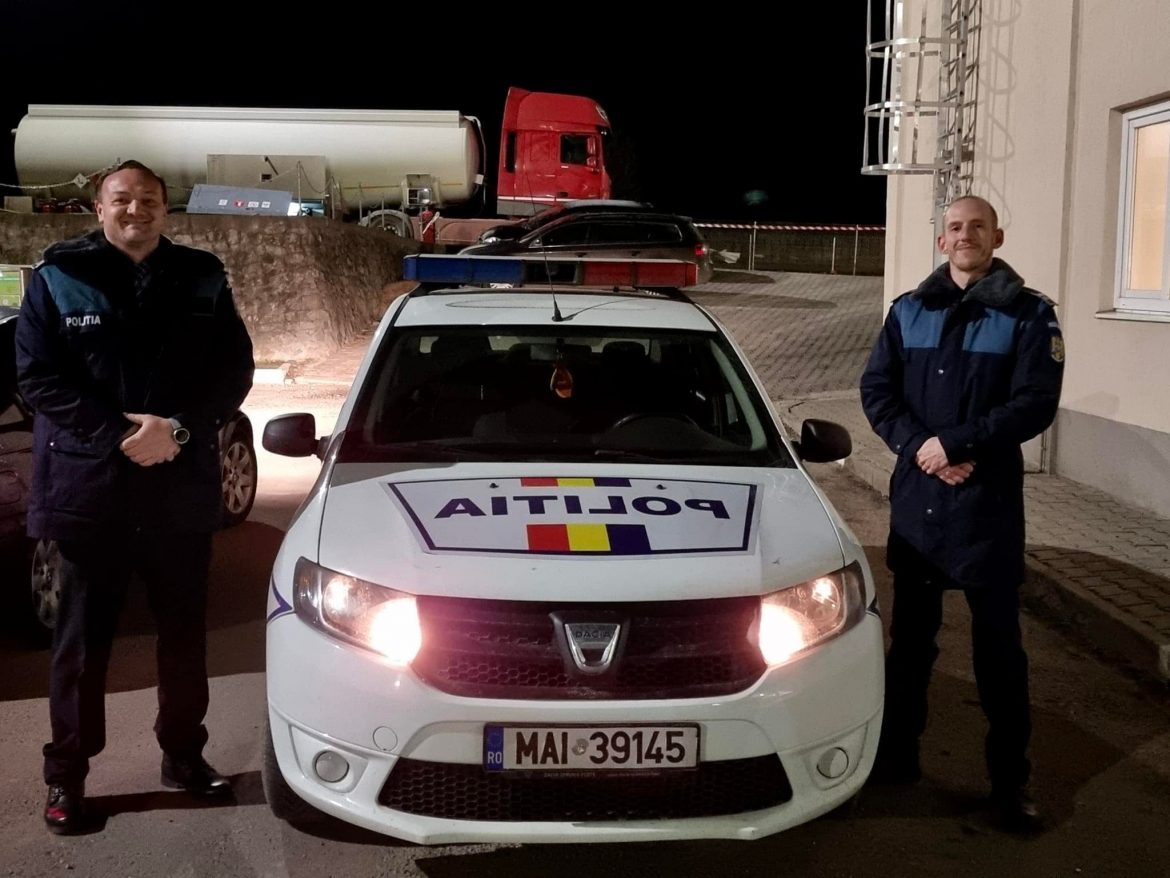 Potrivit IPJ Cluj, agent principal Bajko Tamas și agent șef adjunct Trif Marius se aflau în patrulă în seara lui 7 martie, în orașul Huedin.