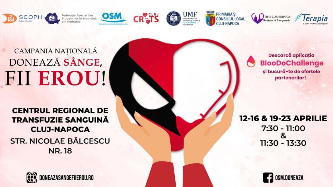 În cele 2 săptămâni de campanie clujenii sunt așteptați la Centrul Regional de Transfuzie Sanguină Cluj-Napoca, str. Nicolae Bălcescu nr. 18, de luni până vineri în intervalul orar 07:30-11:00 și 11:30-13:30 (pe perioada pauzei vor fi dezinfectate suprafețele comune).