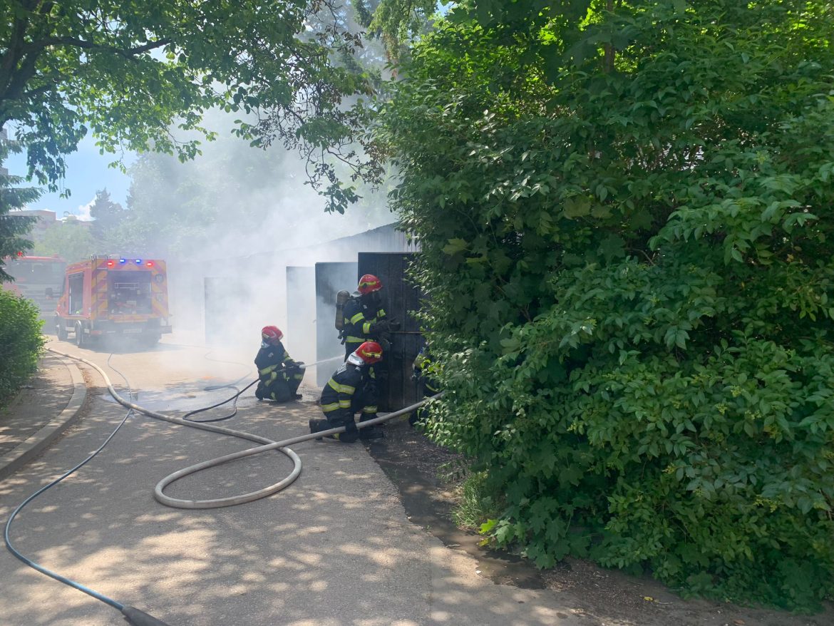 Sâmbătă în jurul amiezii, pompierii au fost alertați despre existența unui incendiu care cuprinsese două garaje. Se pare că totul a pornit de la vegetația uscată, care fusese aprinsă pentru igienizare. Din fericire pagubele au fost doar materiale și nu au existat victime.