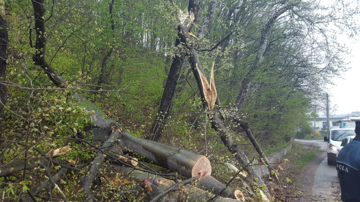 Drum din Cluj blocat din cauza unor copaci căzuți pe șosea
