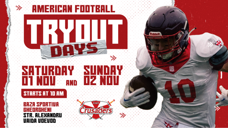 Cluj Crusaders, una dintre cele mai titrate echipe de fotbal american din România, invită publicul clujean să participe la Tryout Days 2025, un eveniment dedicat tuturor celor care doresc să descopere ce înseamnă fotbalul american și să devină parte din comunitatea Crusaders.