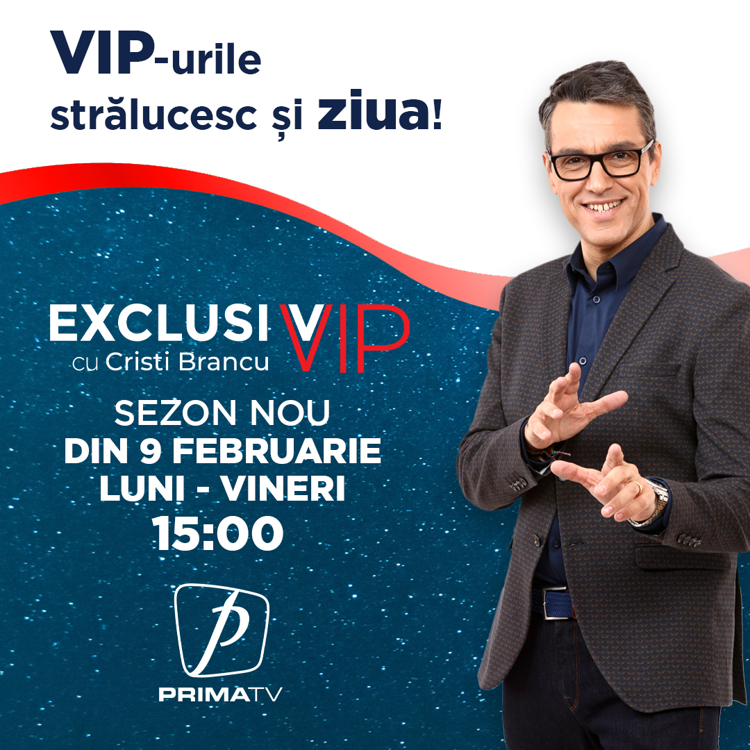 Din 9 februarie, Exclusiv VIP, emisiunea prezentată de Cristi Brancu, revine cu un nou sezon și începe cu o oră mai devreme, în intervalul 15:00–17:00, oferindu-le telespectatorilor și mai mult timp pentru povești savuroase, clipe memorabile și momente de divertisment autentic.