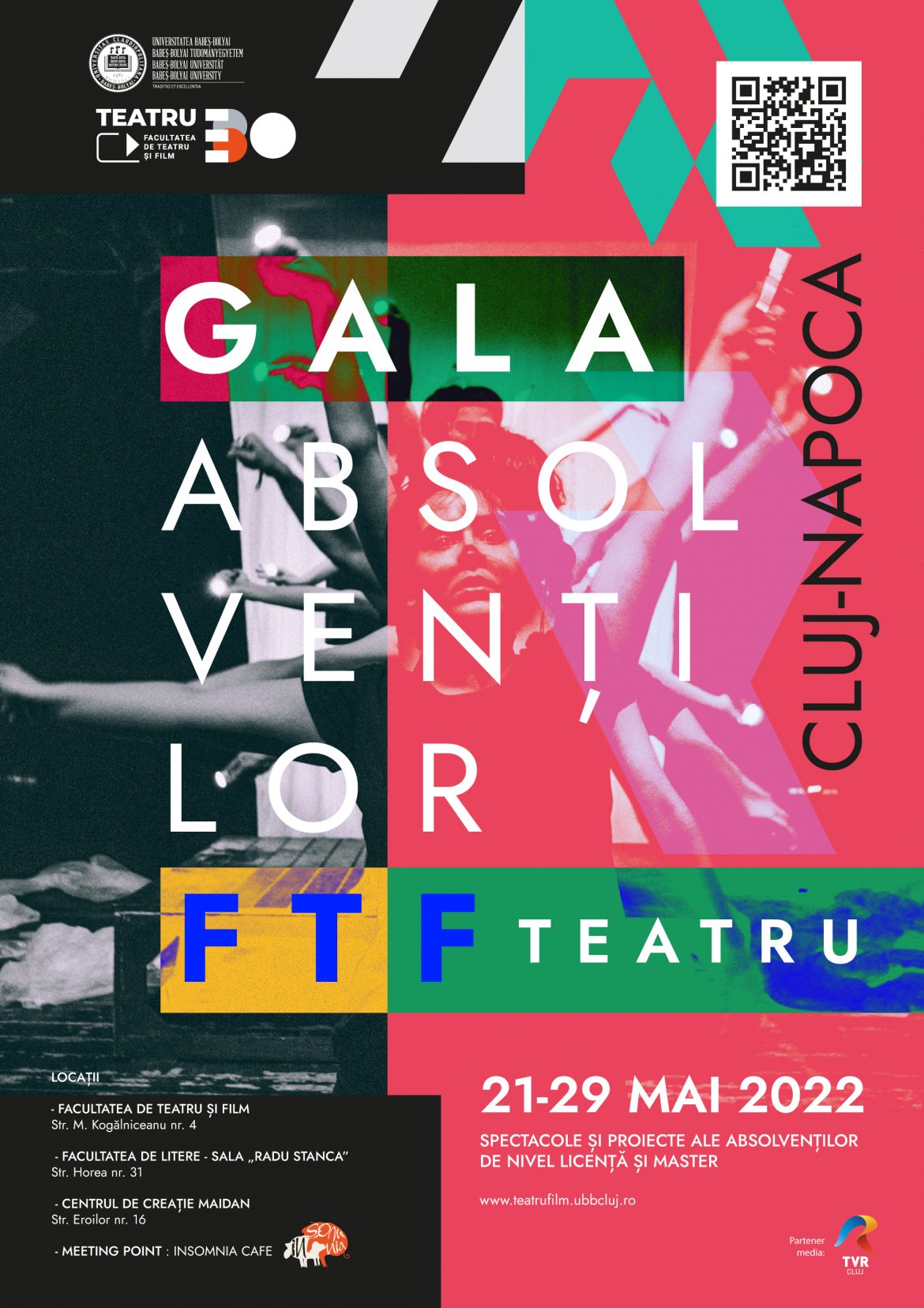 Facultatea de Teatru și Film a Universității Babeș-Bolyai din Cluj-Napoca (UBB) organizează în perioada 21 mai – 29 iunie 2022, Gala FTF, festival dedicat absolvenților facultății.