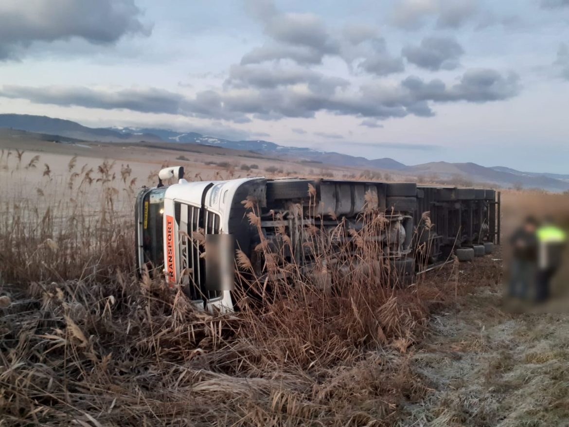 ISU Cluj: Pompierii din cadrul Detașamentului Huedin au intervenit în această dimineață la un accident rutier petrecut la intrare în orașul Huedin, pe DN1 E60. Echipajele noastre au găsit la fața locului un autotren răsturnat în afara părții carosabile. Din fericire, nu au existat victime încarcerate, iar un bărbat a fost evaluat de către paramedici, fără a necesita transportul la spital. La misiune au luat parte o autospecială cu modul de descarcerare și o ambulanță SMURD.