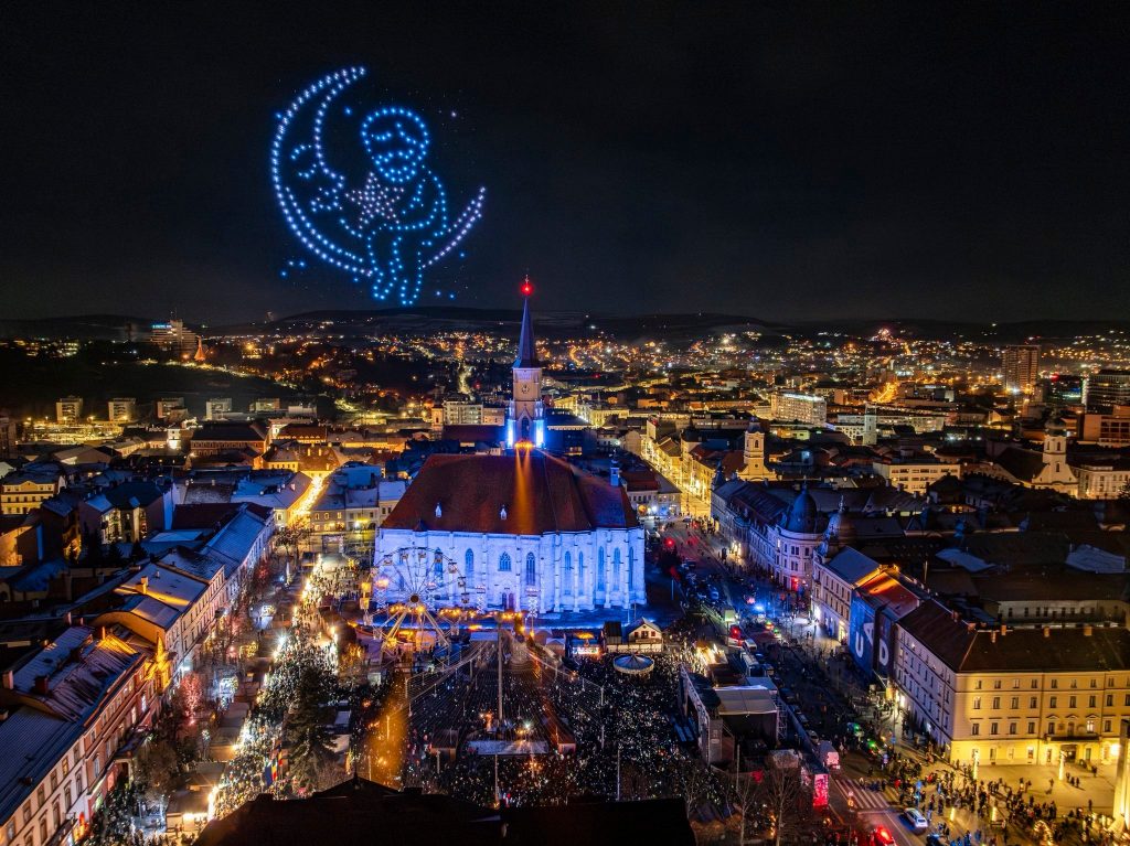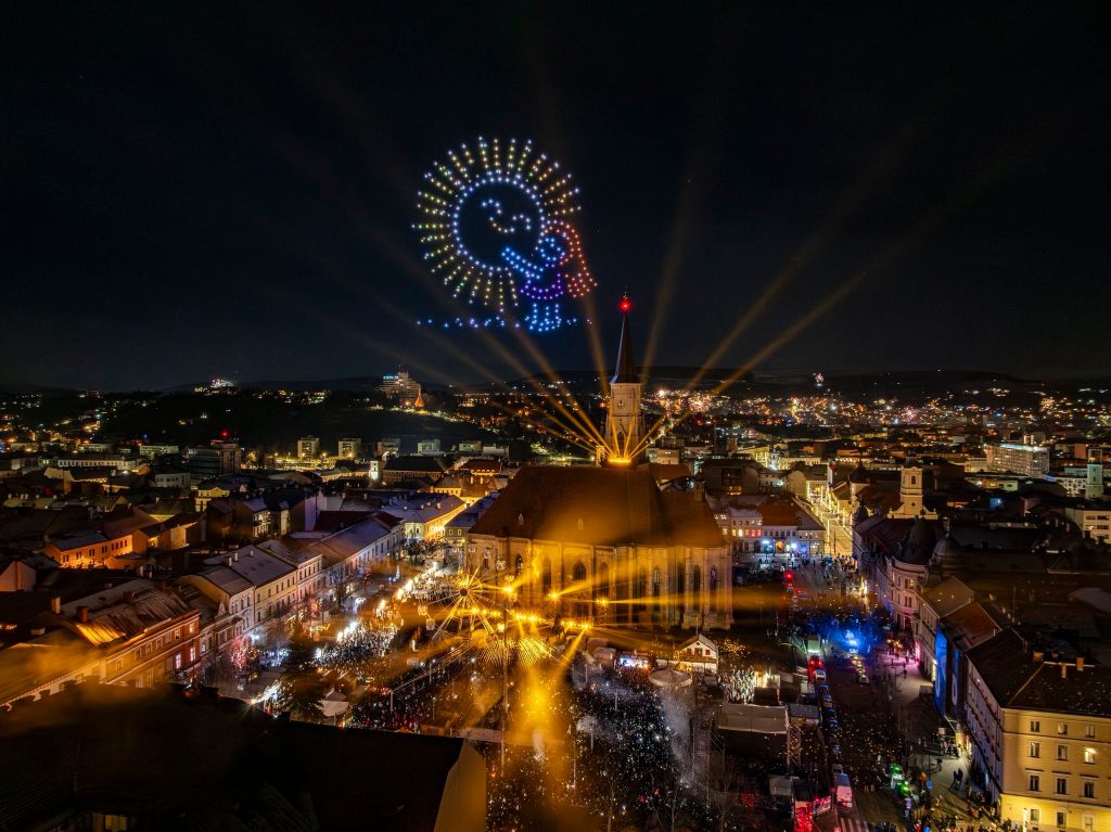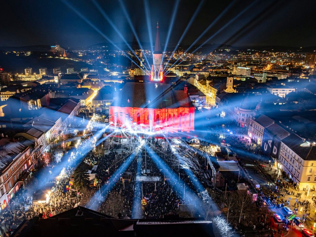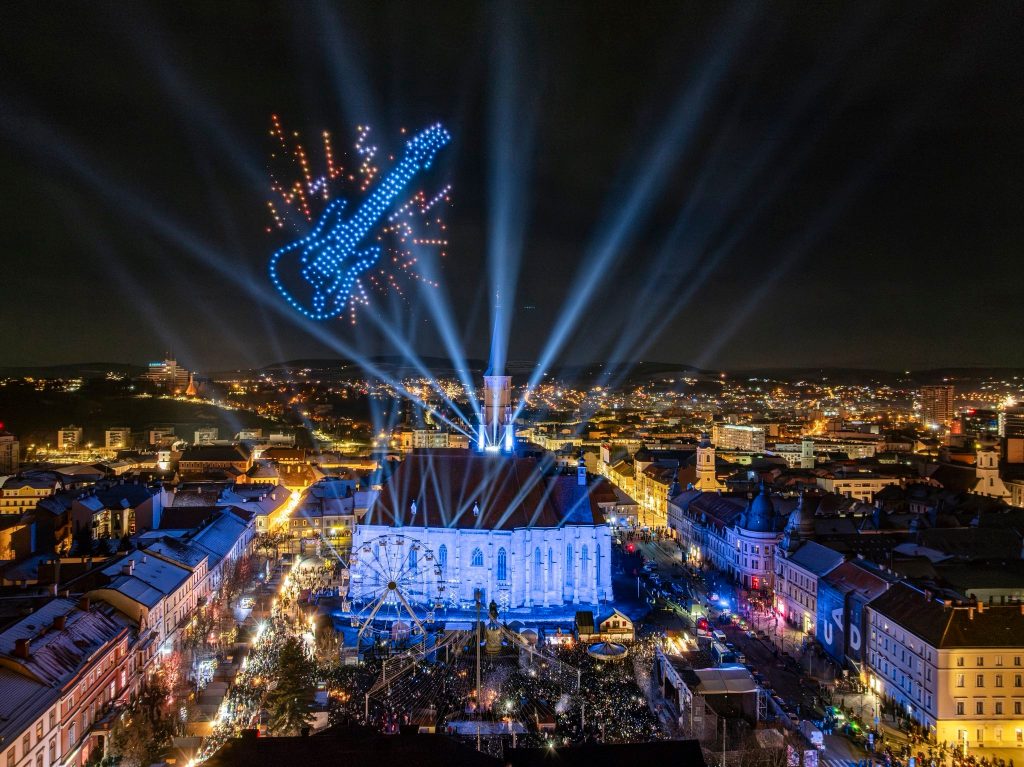 Mii de clujeni s-au adunat în noaptea de Revelion în Piața Unirii din Cluj-Napoca pentru a sărbători împreună trecerea în noul an, cu spectacole lumini și drone și concerte de excepție. Pe scena amplasată la Târgul de Crăciun din Piața Unirii au urcat artiști precum grupul vocal Anatholis, dar și nume precum Hara sau Score Band.