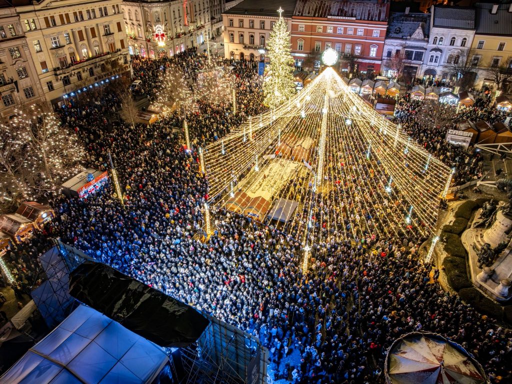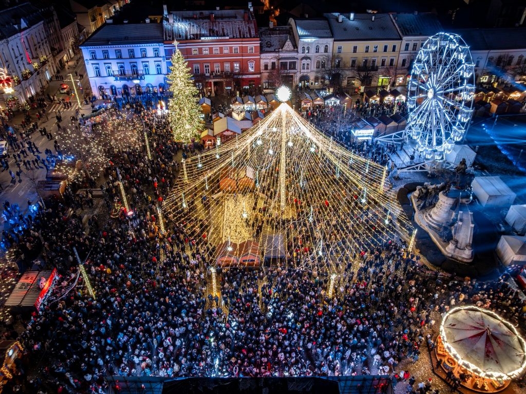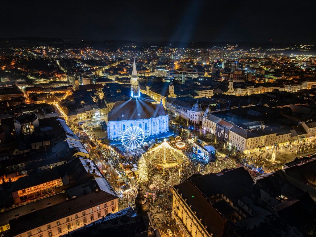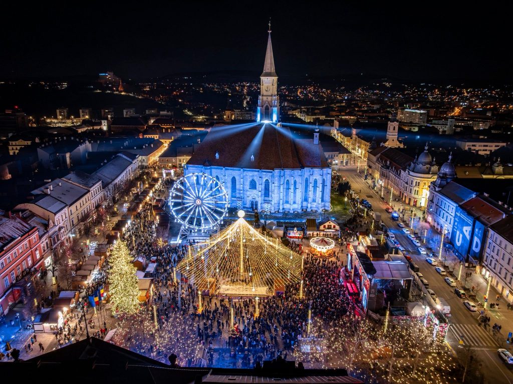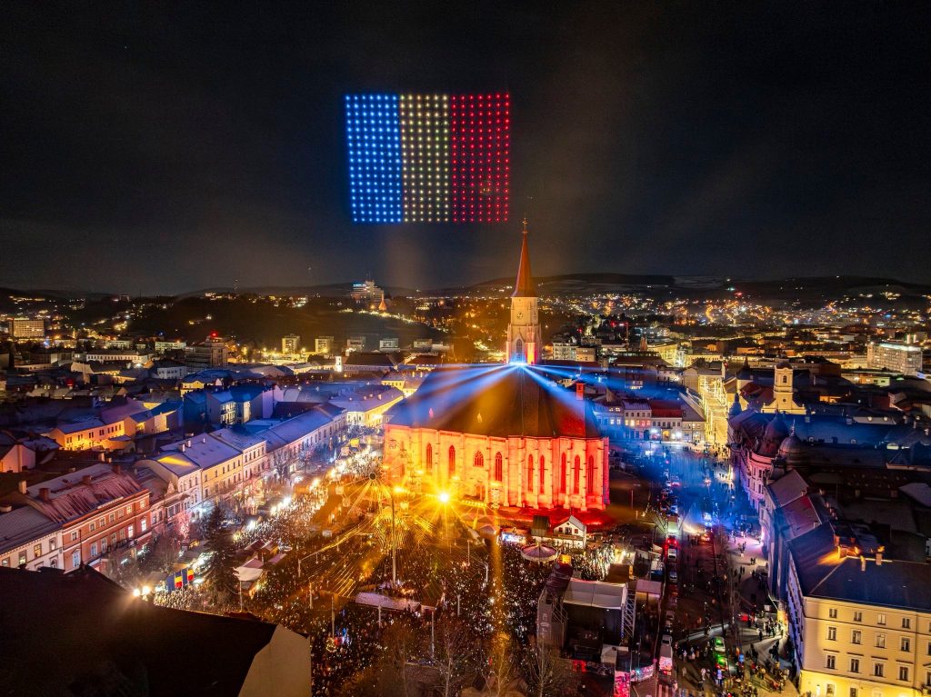 Mii de clujeni s-au adunat în noaptea de Revelion în Piața Unirii din Cluj-Napoca pentru a sărbători împreună trecerea în noul an, cu spectacole lumini și drone și concerte de excepție. Pe scena amplasată la Târgul de Crăciun din Piața Unirii au urcat artiști precum grupul vocal Anatholis, dar și nume precum Hara sau Score Band.