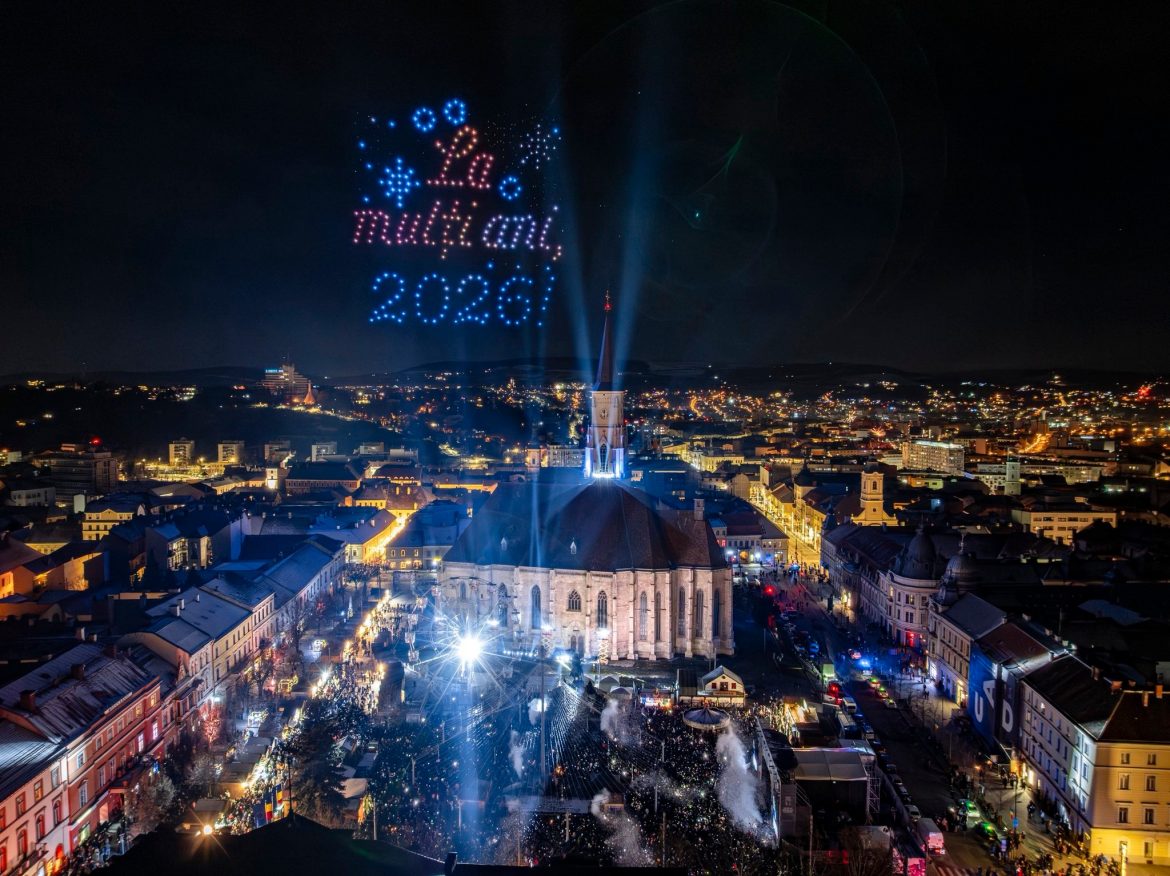 Mii de clujeni s-au adunat în noaptea de Revelion în Piața Unirii din Cluj-Napoca pentru a sărbători împreună trecerea în noul an, cu spectacole lumini și drone și concerte de excepție. Pe scena amplasată la Târgul de Crăciun din Piața Unirii au urcat artiști precum grupul vocal Anatholis, dar și nume precum Hara sau Score Band.