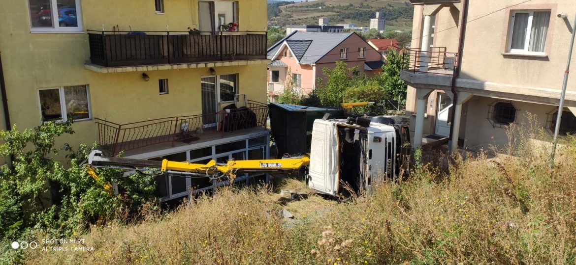 O macara din care muncitorii descărcau niște materiale de construcție s-a răsturnat pe strada Transilvaniei, din comuna Baciu. Din fericire nu au fost persoane rănite, dar utilajul s-a rostogolit chiar în fața unui bloc de locuințe și a avariat mai multe balcoane.