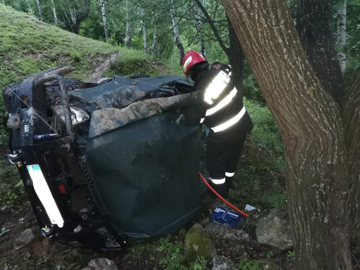 „O autospecială de descarcerare și două echipaje SMURD au fost alertate în această dimineață, în jurul orei 4:30, ca urmare a răsturnării unui autoturism pe o pantă foarte abruptă și la o diferență de nivel de circa 150 m. Localizarea evenimentului a fost extrem de dificilă și a fost realizată în colaborare cu echipajele de poliție și jandarmi, care s-au implicat direct în intervenția salvatorilor.