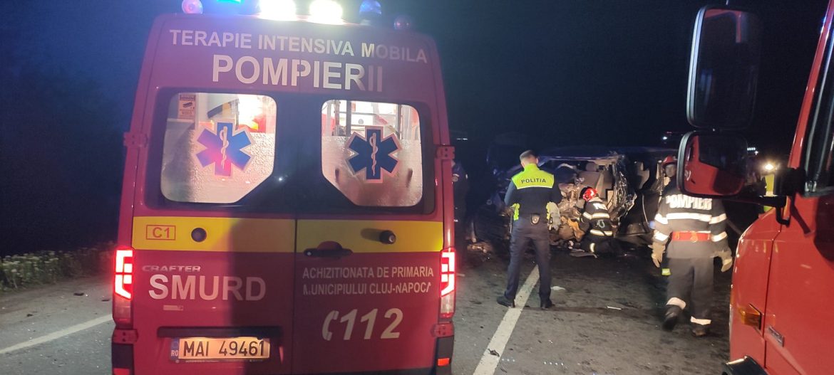 ISU Cluj: Pompierii din cadrul Detașamentului 1 Cluj-Napoca și a Gărzii Aghireșu au intervenit în această seară la un grav accident rutier petrecut pe E 81, pe raza localității Șardu, comuna Sânpaul.