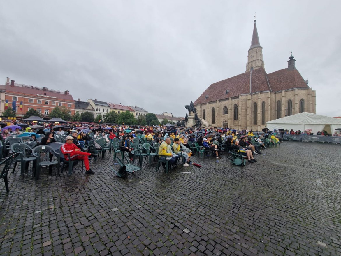 La Cluj-Napoca unii au ales să vizioneze meciul în Piața Unirii, pe ecranul amplasat acolo. Suporterii au cântat imnul la unison.