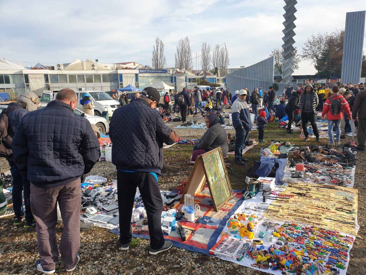 Pe la 7 dimineața începe nebunia. Intrarea costă 1 leu pentru clienți. Pentru o secundă, te gândești că e prea puțin, dar se strâng ceva bani de la sutele de oameni care vin și pleacă. Peisajul e dominat de haine. Puse morman pe jos, pe o măsuță improvizată, pe bordul mașinii sau într-un mic cort amenajat, de unde auzi tot felul de reclame: „Trei la 10 lei”, „două la 5 lei”, „haideți, veniți la probat!”. Sunt și haine vechi, unele ponosite, aproape de deteriorare, dar sunt și altele bune de purtat.