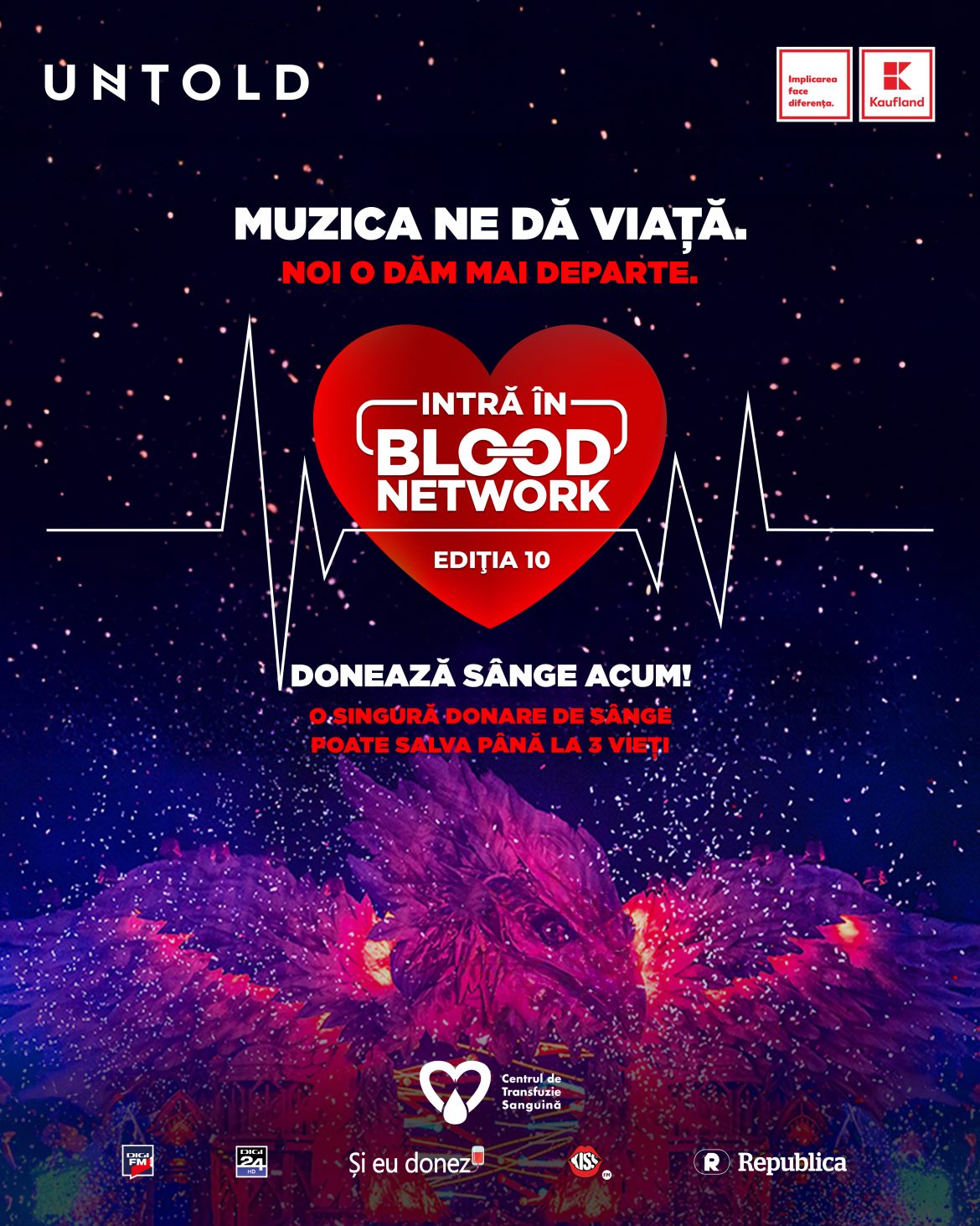 Organizatorii festivalurilor UNTOLD și Neversea dau startul celei mai longevive inițiative de donare de sânge din România, BLOOD NETWORK, care a ajuns, în acest an, la a 10-a ediție. De la începutul campaniei au fost salvate peste 60.000 de vieți, cu ajutorul a peste 18.000 de donatori din întreaga țară.