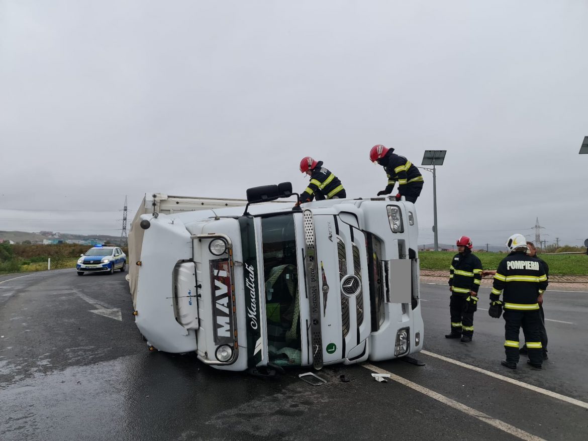 Pompierii de la Detașamentul 1 Cluj-Napoca au intervenit recent la un accident rutier care a avut loc la ieșirea din comuna Apahida, în direcția Jucu. Un autotren implicat în incident s-a răsturnat, însă, din fericire, nu au fost persoane încarcerate. Paramedicii SMURD au evaluat un bărbat la fața locului, care a refuzat să fie transportat la spital. Pompierii au acționat pentru a implementa măsurile necesare de prevenire și stingere a incendiilor, iar la intervenție au participat și echipajele de la Punctul de Lucru Jucu.