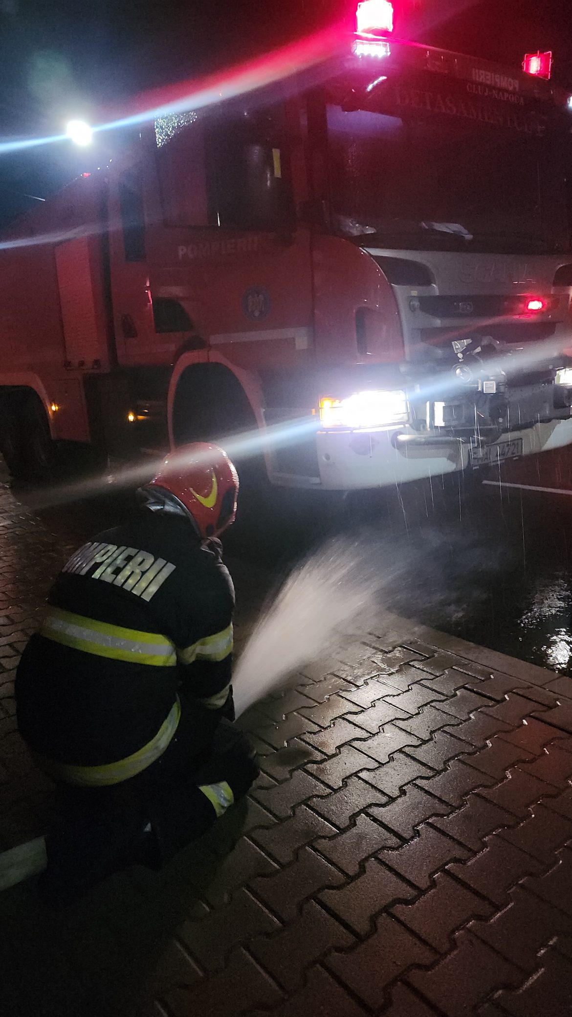 - Gilău: intervenție pentru evacuarea apei dintr-un depozit de materiale textile.