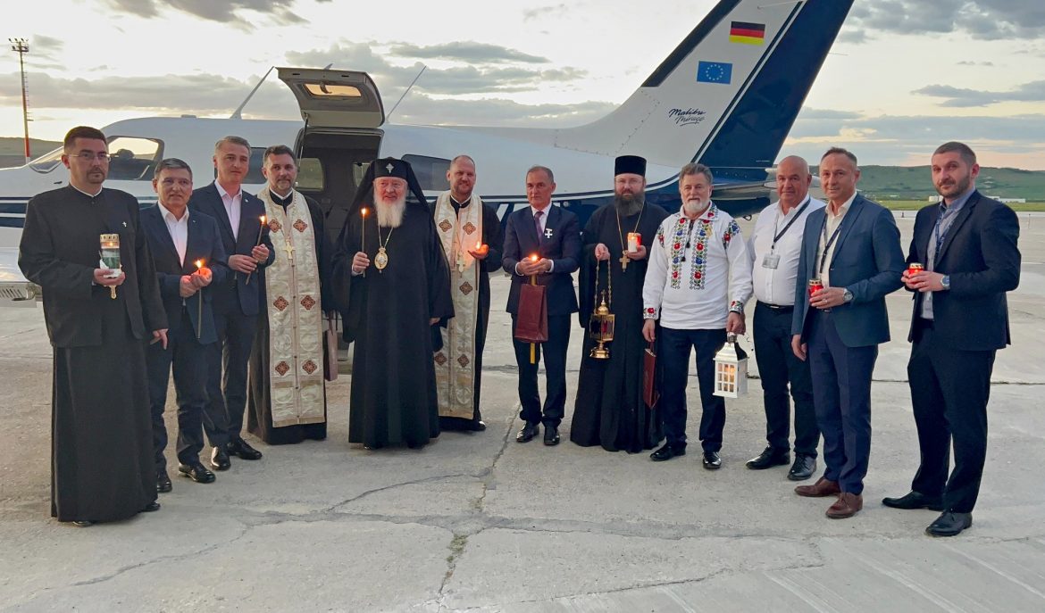 Aeronava cu delegația care a adus Sfânta Lumină în România a aterizat pe Aeroportul Internațional Otopeni în jurul orei 18:30.