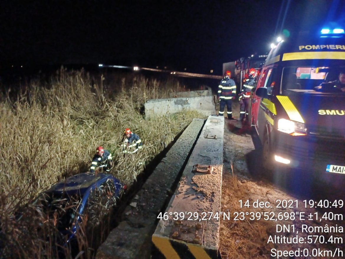 „Pompierii au fost alertați în jurul orei 19.00, iar la fața locului au găsit un autoturism căzut pe o coastă de pe marginea părții carosabile, la o diferență de nivel de cca 3m.