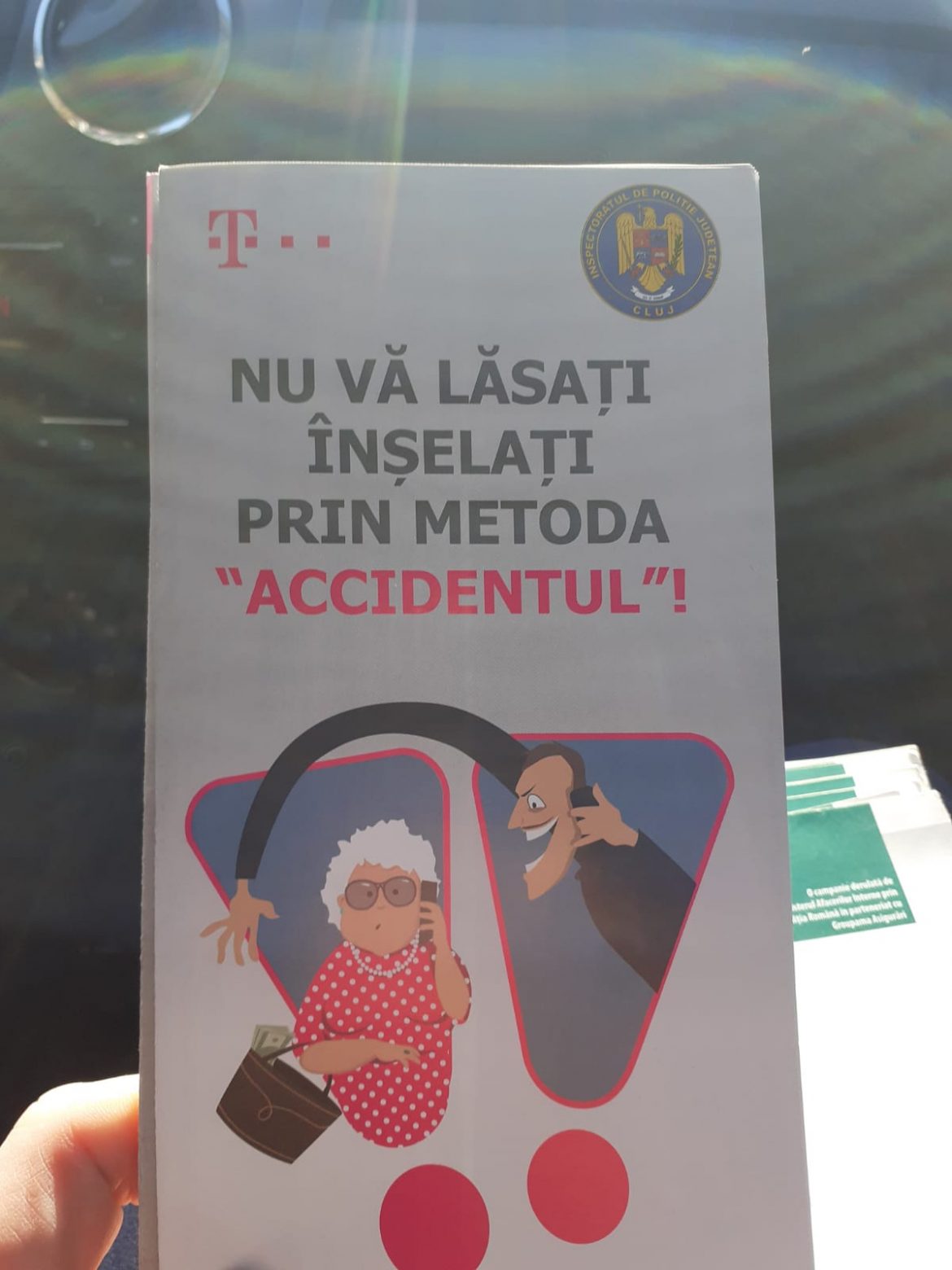 „La scurt timp după convorbirea telefonică, la domiciliul bărbatului s-a prezentat  tânărul de 21 de ani pentru a lua banii. Momentul a fost întrerupt de o vizită inopinată a nepoților bărbatului, care a constatat rapid că părinții acestora nu au fost implicați în niciun accident, găsindu-i dormind în casă. Astfel, l-au reținut pe tânărul de 21 de ani și au anunțat Poliția”, se arată într-un comunicat al IPJ Cluj.