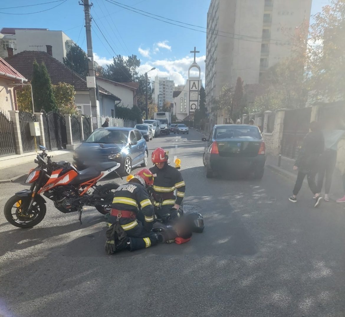 Un tânăr a ajuns la spital joi după-amiaza, după ce a fost lovit de mașină în timp ce circula cu motocicleta. Accidentul a avut loc pe strada Ciobanului din Cluj-Napoca.