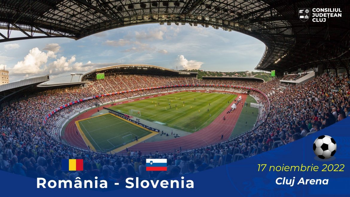 Consiliul Județean Cluj a transmis Federației Române de Fotbal acceptul privind organizarea, în data de 17 noiembrie 2022, pe stadionul Cluj Arena, a meciului amical de fotbal dintre selecționatele României și Sloveniei.