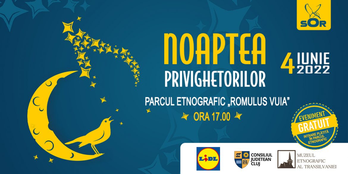 Societatea Ornitologică Română organizează o nouă ediție a Nopții Privighetorilor la Cluj-Napoca. Evenimentul va avea loc sâmbătă, 4 iunie, în Parcul Etnografic Național „Romulus Vuia” din Cluj-Napoca, în secția în aer liber de pe Tăietura Turcului.