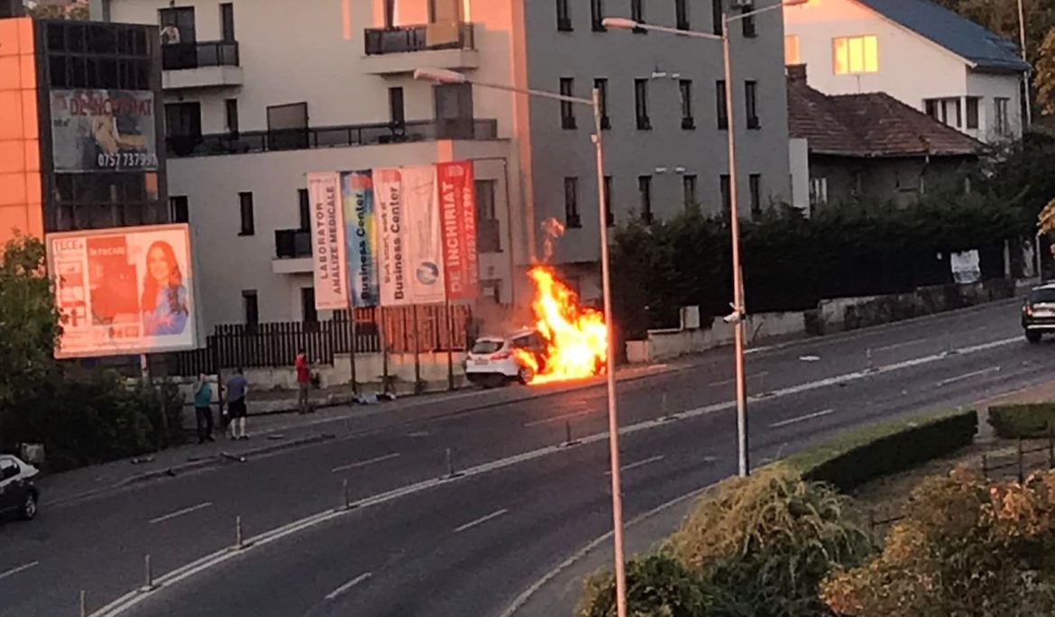 O mașină a fost cuprinsă marți dimineața, pe Calea Turzii din Cluj-Napoca. Pompierii au intervenit de urgență, dar autoturismul a fost distrus în totalitate.