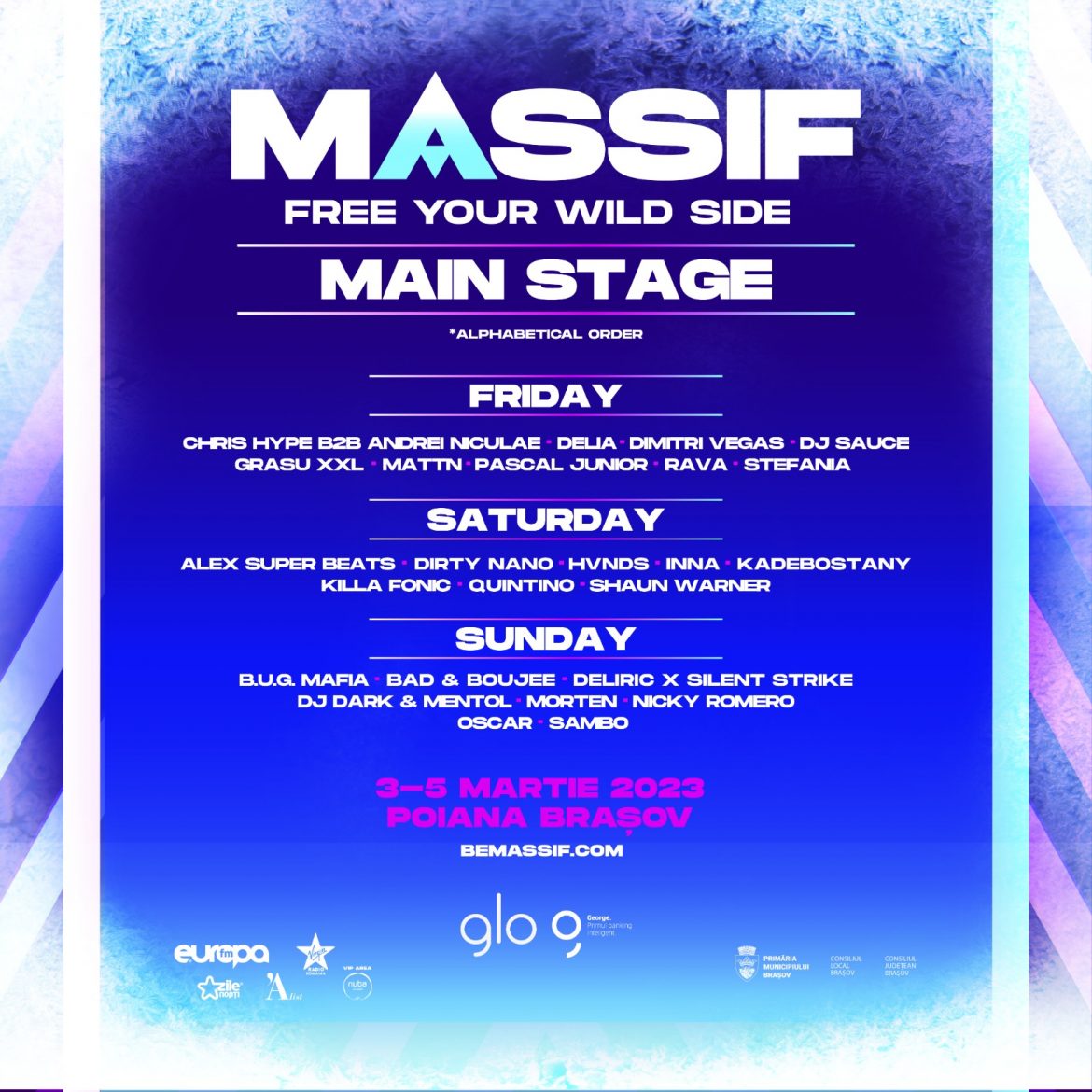 A mai rămas o lună până când cel mai așteptat festival de la munte, Massif, își va deschide porțile. Începând de astăzi, fanii festivalului pot vedea programul pe scene și își pot achiziționa biletele pe zile la prima ediție Massif, care va avea loc în Poiana Brașov, în perioada 3-5 martie.