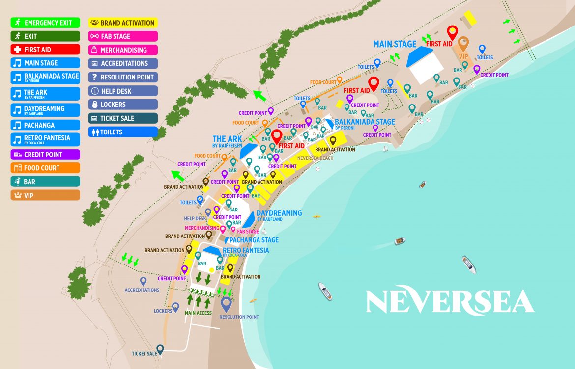 Producția festivalului Neversea este demnă de filmele americane: de la decoruri și arhitectură, la poveste, personaje maritime fantastice, animatori și dansatori, artiști și fani din întreaga lume. La aniversarea celor 5 ani de Neversea vor fi 6 scene de muzică și mai multe music spots desfășurate pe aproximativ 110.000 mp.