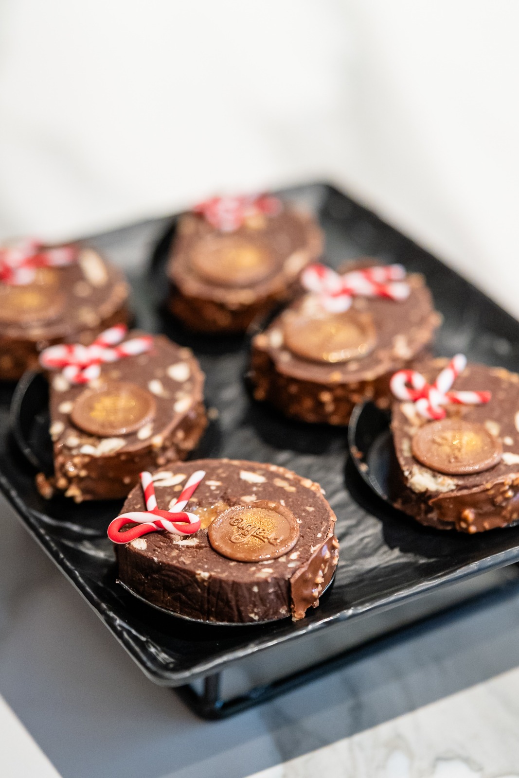 Și atunci, inspirația a venit dintr-un alt simbol al zonei noastre: Salina Turda, un loc recunoscut în întreaga lume. Așa s-a născut ideea asocierii dintre dulcele alunelor de pădure și nota sărată a caramelului inspirat de Salină, o combinație ce reflectă perfect contrastul frumos al Clujului – modern și tradițional, cald și surprinzător”, descrie Chef Florina Stretea, cofetarul șef.