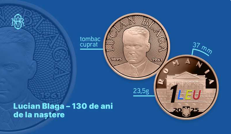 Banca Națională Română (BNR) a lansat în cursul acestei zile prima monedă colorată din istoria monetară a României ce poartă chipul marelui poet și filozof român Lucian Blaga. Moneda este realizată din tombac cuprat și prezintă o valoare nominală de 1 leu.