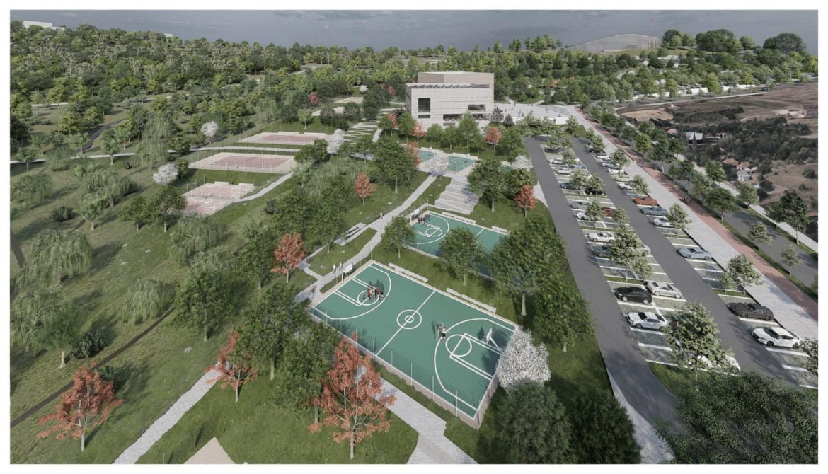 - Bază sportivă: agrement și terenuri sportive, activități recreative cu acces nelimitat: locuri de joacă pentru copii, zonă șah, zonă ping-pong, zona aparatelor fitness, zonă skate și zonă parkour, amfiteatru deschis cu gradene și un grup sanitar public